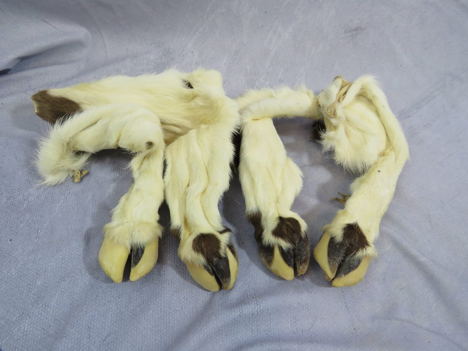 Full set (4) tanned calf legs. Cute, patched/spotty colour with pattern extending onto the hooves. These were not tanned by me but are a few years old now and holding up fine. Great for crafts or to freak your friends out!